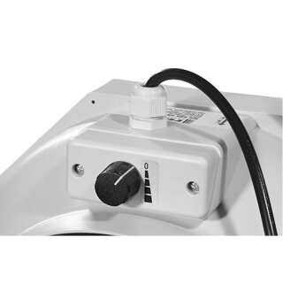 Dieser Abzugsventilator ist drehzahlsteuerbar durch Spannung oder Frequenz, mit Hilfe eines Triac oder eines Trafo. Zu Motorschutz Zwecken ist das Gerät mit einem eingebauten Thermostat Schalter versehen, der den Ventilator automatisch abschaltet, wenn dieser eine zu hohe Arbeitstemperatur erreicht.