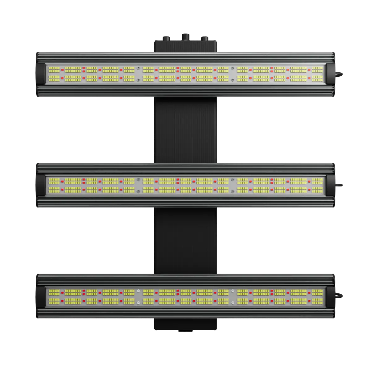 - Flexible Lichtleisten: Jede der drei Lichtleisten kann unabhängig voneinander positioniert werden, um auch ungleichmäßige oder spezielle Anbauflächen ideal auszuleuchten. So wird beispielsweise die seitliche Beleuchtung von Pflanzen möglich.
