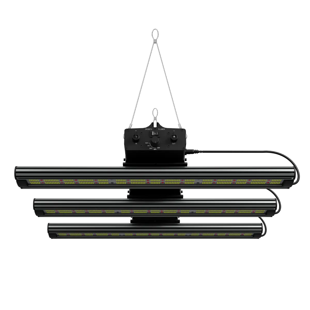 Die GCx-9 PWR hebt sich durch ihren getrennten Wuchs- und Blütemodus hervor, wodurch sie sich an jede Phase des Cannabisanbaus perfekt anpassen lässt. Zusätzlich ermöglicht sie eine flexible Positionierung der drei Lichtleisten, um eine optimale Lichtverteilung zu gewährleisten.