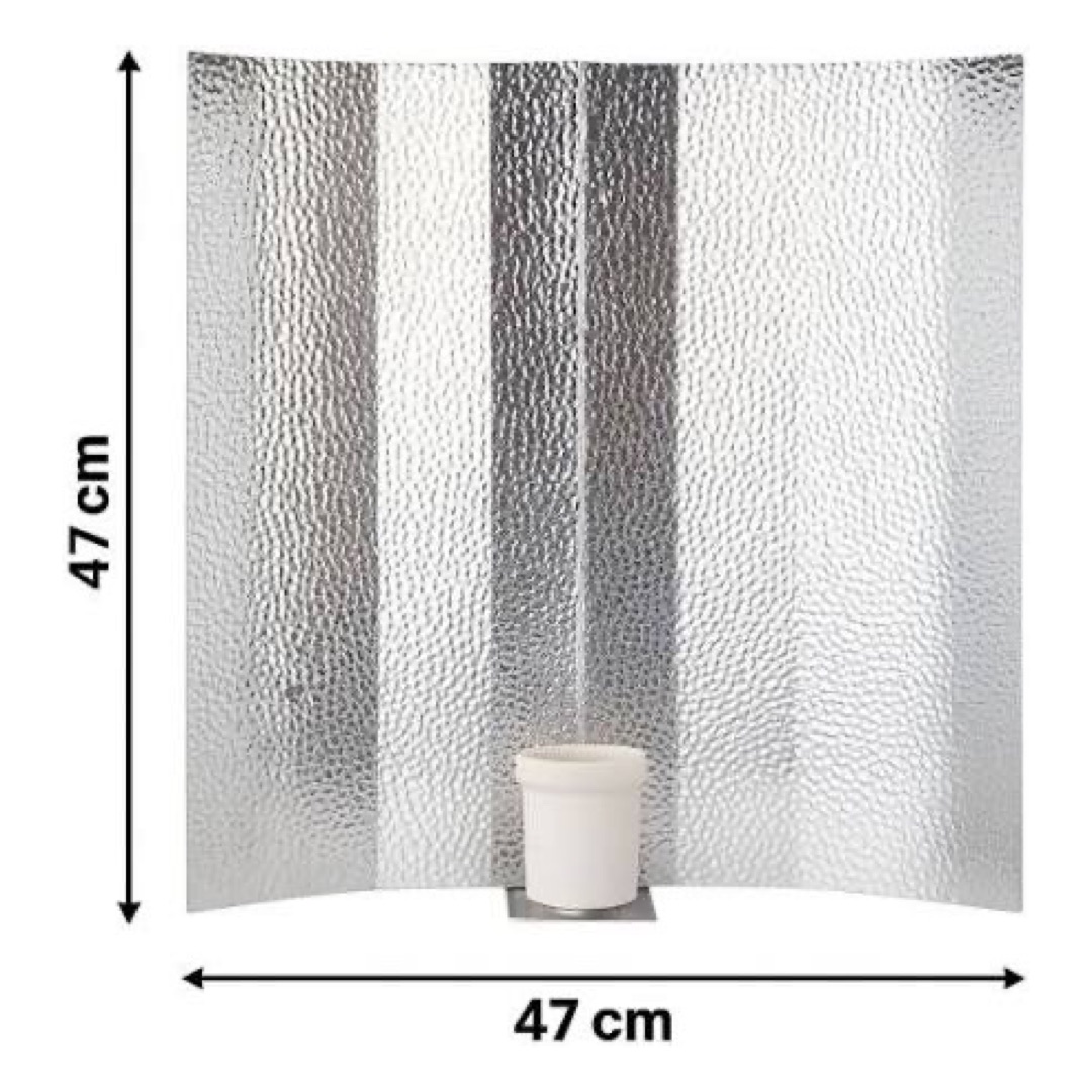 Der Hammerschlagreflektor 47 × 40 cm ist ein effizienter Reflektor für den Einsatz mit E40-Leuchtmitteln wie Natriumdampf- oder Metallhalogenlampen. Durch die spezielle Hammerschlagstruktur wird das Licht gleichmäßig verteilt und optimal auf die Pflanzenfläche gelenkt. So lässt sich die vorhandene Lichtleistung effektiv nutzen und der Ertrag im Indoor-Anbau steigern.