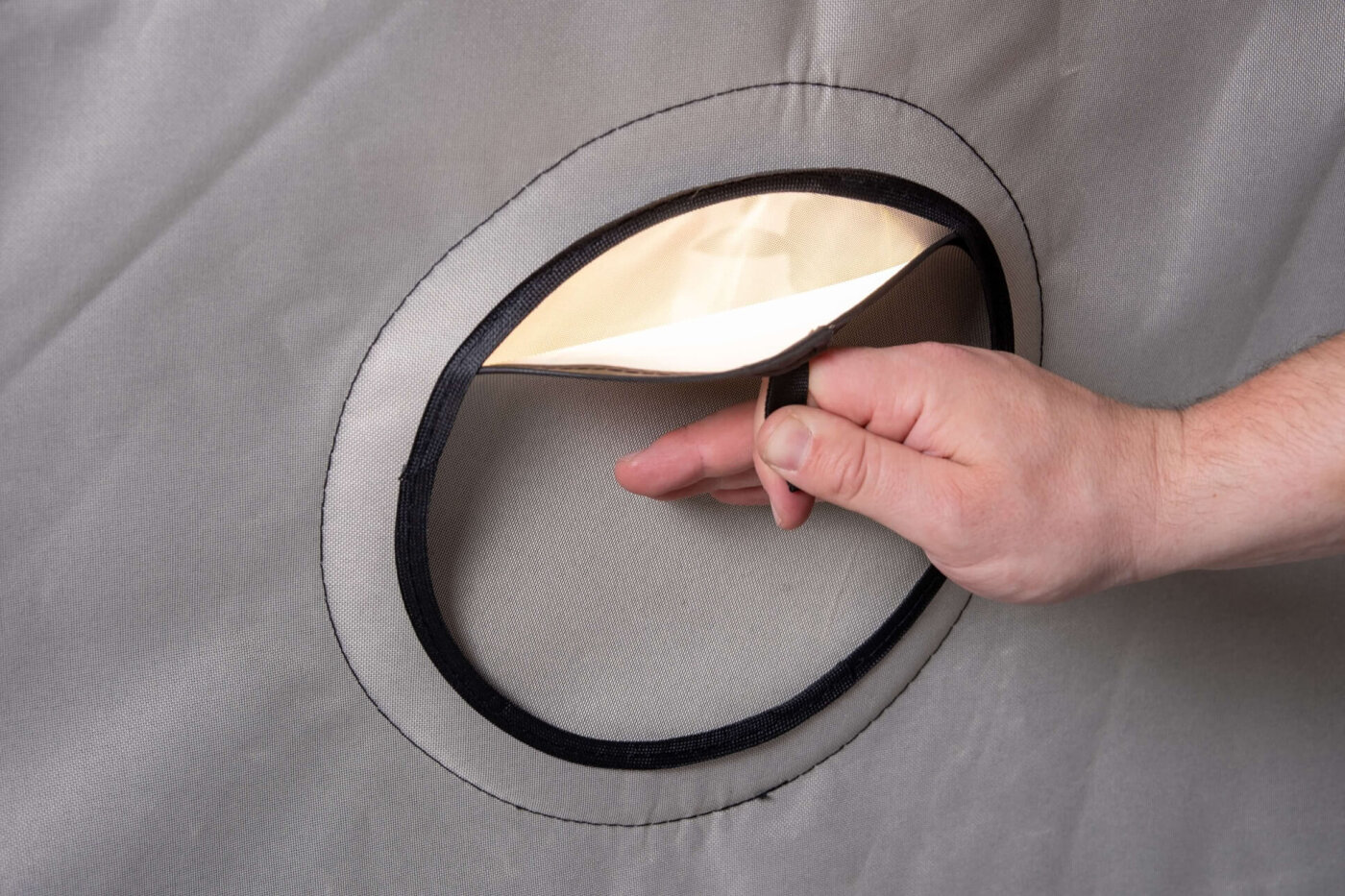 durch die PAR+ Auskleidung steht dir mehr nutzbares Licht zur Verfügung. Hightech-Design und Technik aus Deutschland: barrierefreier Zugang. Robuste, undurchdringbare und schmutzabweisende Materialien, für eine lange Nutzungsdauer. Widerstandsfähiges Außenmaterial. Abnehmbares, wasserundurchlässiges Bodenelement, zweites Bodenelement, das durch einen Rundum-Reißverschluss fest mit dem Zelt verbunden ist.