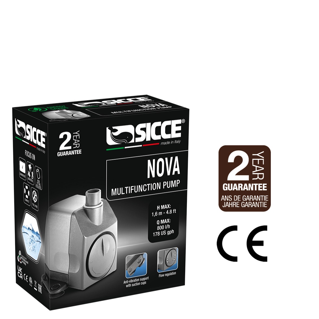 Die Sicce Nova ist eine kompakte, komplett tauchfähige Pumpe mit einer Förderleistung von bis zu 800 Litern pro Stunde. Sie vereint die bewährte Qualität der Marke Sicce und der “Easy Line”-Serie – bekannt für zuverlässige, langlebige und einfach zu wartende Pumpen. Mit ihrer gleichmäßigen Wasserförderung eignet sie sich hervorragend für Tropf-Bewässerungen sowie hydroponische und aeroponische Systeme.