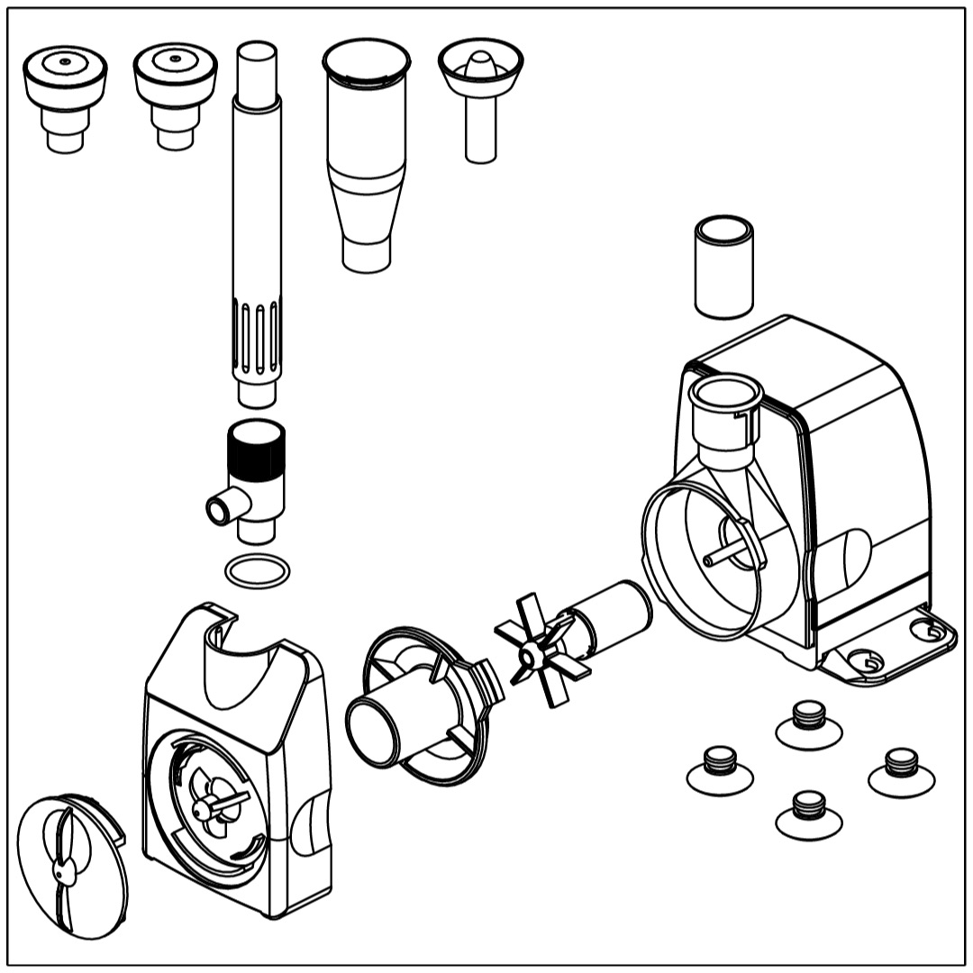| Vorfilter | Vorfilterelement (z. B. Schwamm / Filterkorb) (je nach Ausführung) |