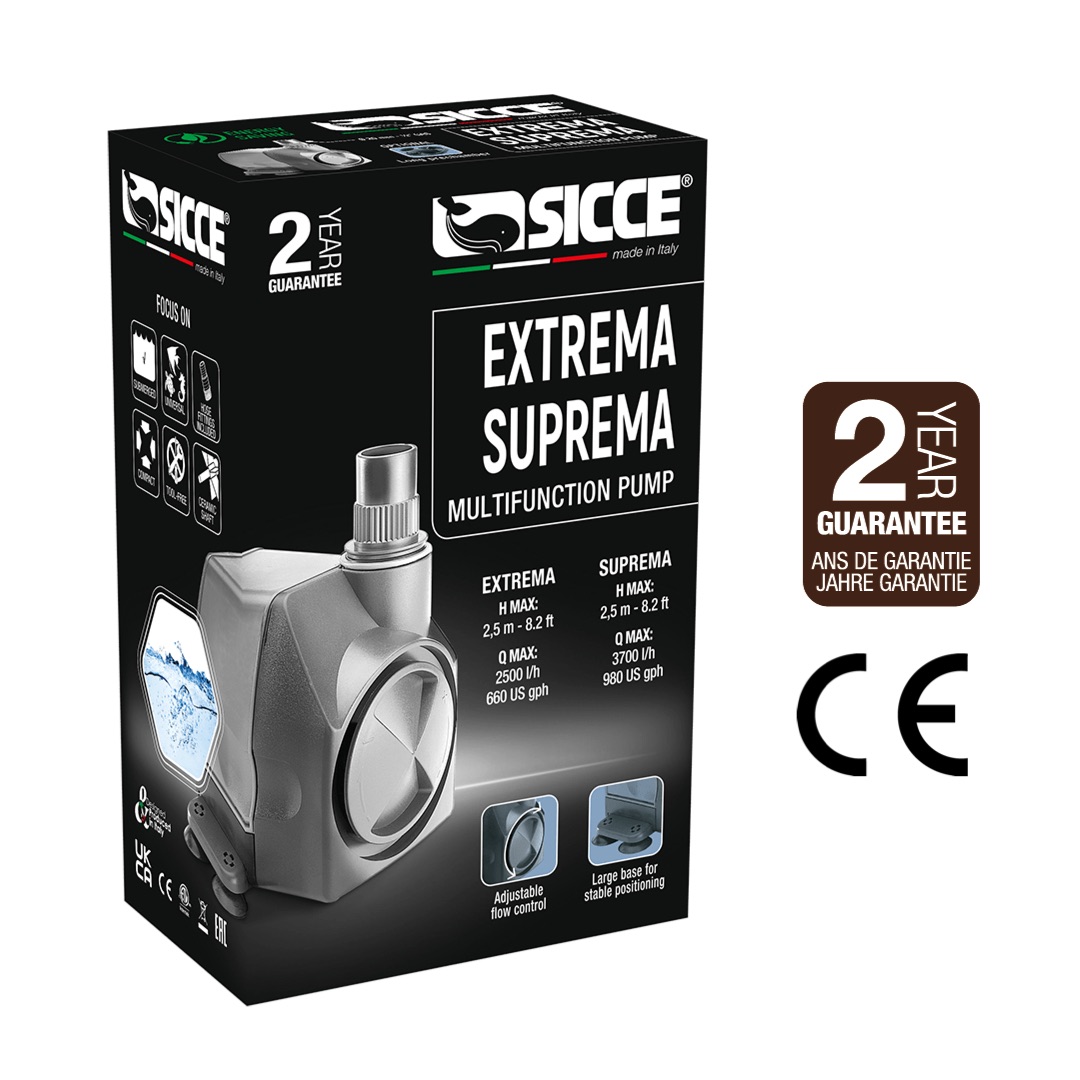 Die Sicce Suprema ist eine kompakte, komplett tauchfähige Pumpe mit einer Förderleistung von bis zu 4000 Litern pro Stunde. Sie vereint die bewährte Qualität der Marke Sicce und der “Easy Line”-Serie – bekannt für zuverlässige, langlebige und einfach zu wartende Pumpen. Mit ihrer gleichmäßigen Wasserförderung eignet sie sich hervorragend für Tropf-Bewässerungen sowie hydroponische und aeroponische Systeme.