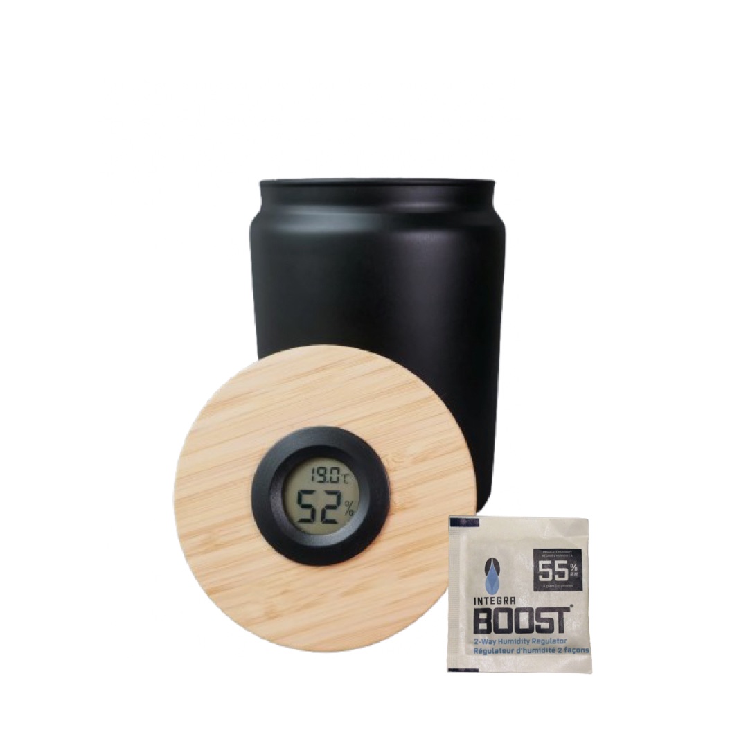 Die ideale Lösung, um getrocknetes Cannabis langfristig frisch zu halten und ein Austrocknen während der Lagerung zu vermeiden. Das lichtundurchlässige schwarze Glas schützt zuverlässig vor UV-Strahlung und bewahrt Qualität, Aroma und Wirkstoffe.